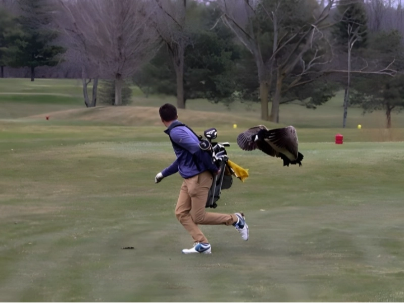 Even golf can be risky. This striking photo captures a moment that challenges the idea of golf as a calm, safe sport. It might show an unexpected danger or surprise on the course—a golfer facing an alligator, dodging lightning, or a wild golf ball causing chaos. The photographer freezes the moment of risk or shock, creating a compelling story. The contrast between the manicured green and sudden danger is visually powerful. This image not only provides excitement but also makes you rethink assumptions about safety in leisure activities. It’s a reminder that every pursuit, no matter how peaceful, can hold surprises and that staying alert is always wise.