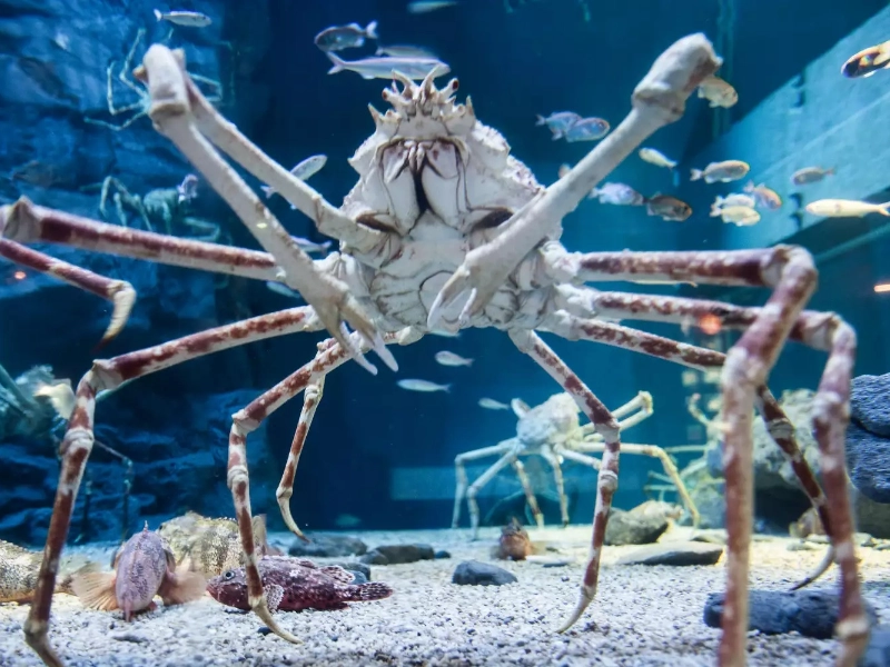The Japanese Spider Crab (Macrocheira kaempferi) is a colossal crustacean and the largest known arthropod, with a leg span of up to 12 feet (3.7 meters). Found in the waters around Japan at depths of 150 to 800 meters, this extraordinary species is perfectly adapted to the cold, high-pressure environment of the deep ocean. Its spindly legs allow it to traverse the seafloor efficiently while blending into its surroundings for camouflage. Despite their intimidating appearance, Japanese Spider Crabs are generally scavengers, feeding on dead fish, algae, and small crustaceans. Their strong claws can also crack the shells of mollusks. Interestingly, these crabs use "decorating behavior," attaching sponges and algae to their shells for additional camouflage and protection from predators. With a lifespan of up to 100 years, these crabs grow slowly, molting regularly throughout their lives. Females can carry up to 1.5 million eggs, though only a fraction survive to adulthood. Due to their slow growth and long lifespan, conservation efforts are critical, as overfishing and habitat destruction pose significant threats. The Japanese Spider Crab is a remarkable species, showcasing the incredible adaptations of life on the ocean floor.