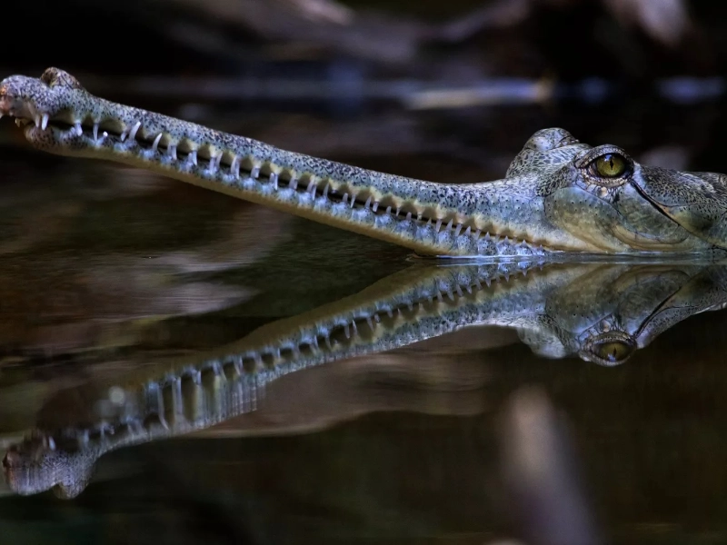 The gharial (Gavialis gangeticus) is a critically endangered crocodilian native to the rivers of northern India and Nepal. It is easily recognized by its long, narrow snout, which is lined with over 100 sharp, interlocking teeth. This specialized snout is perfectly adapted for catching fish, which makes up the majority of its diet. Male gharials have a bulbous growth at the tip of their snout, called a ghara, which is used for vocalizations and displays during the mating season. Despite being one of the largest crocodilians—males can grow up to 6 meters (20 feet) long—the gharial poses little threat to humans or large mammals, as its jaws are not suited for handling larger prey. The gharial’s population has declined dramatically due to habitat loss, overfishing, and human disturbance. Conservation efforts, including captive breeding and habitat protection, are essential to ensure the survival of this ancient species, which plays a vital role in maintaining the health of river ecosystems.