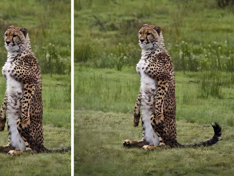 Price: $6,500* This remarkable image of a cheetah standing on its hind legs was probably captured with a professional wildlife camera like the Sony A1. The alert stance suggests the cheetah has noticed something, prompting it to stand upright as it prepares for a quick dash. Cheetahs, whether in the wild or compared to domestic cats, share that unmistakable feline charm. Look at those large paws! This pose is both adorable and impressive, reminiscent of a curious father peering out a window to survey his surroundings. The photo captures the beauty and agility of these magnificent creatures, blending power and grace in a single frame.