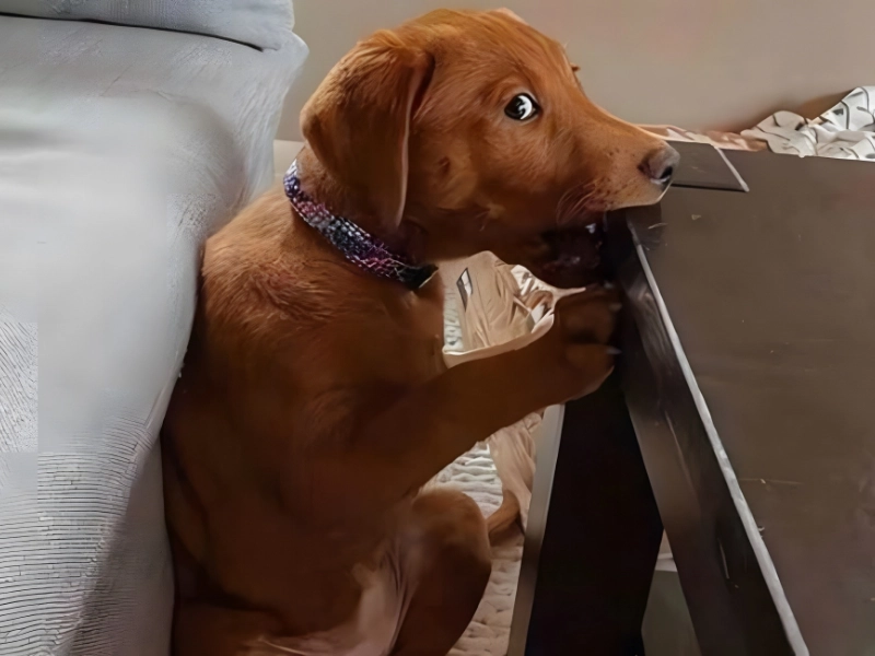 Average Price: $700* Dogs are experts at deflecting blame, and this charming photo captures that perfectly. Even when caught red-handed, they’ll act as if they had nothing to do with it—this image is proof! In the scene, a puppy is caught chewing on the corner of a table (a classic puppy habit) while giving his owner a sly side-eye. His expression seems to suggest that the smaller brown puppy nearby is the real culprit, not him! Taken with a Sharp Edge+, this photo is a humorous reminder of the playful antics and clever tactics of our furry friends. It’s a snapshot that every dog owner can relate to!