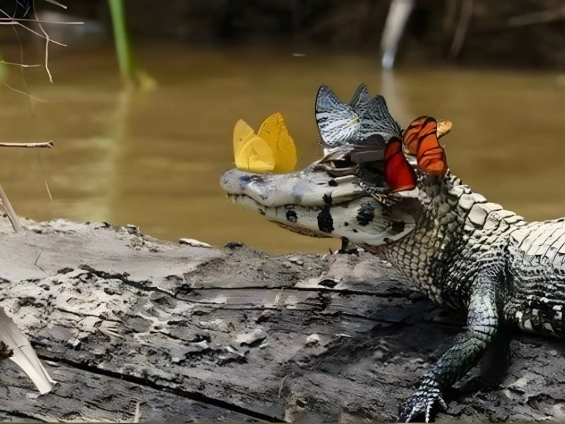 Price: $4,500 Who says crocodiles can’t be beautiful? While this one might look intimidating, he seems to be quite the local celebrity. Sunbathing peacefully, he’s become a resting spot for butterflies, adding a whimsical charm to his otherwise fierce appearance. His relaxed smile says it all—he’s clearly enjoying his new butterfly accessories! This enchanting image was likely captured with a high-end wildlife camera like the Sony A9 II, perfect for photographers aiming to elevate their skills. The photo beautifully contrasts the crocodile’s rugged nature with the delicate butterflies, creating a scene that’s both striking and serene.