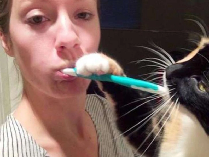 Cats are natural critics, and they’re not afraid to let you know when you’re failing at even the simplest tasks. This feline supervisor has taken it upon itself to oversee your sweeping technique, ensuring that every move meets its high standards. Who knew cleaning could be so closely monitored?