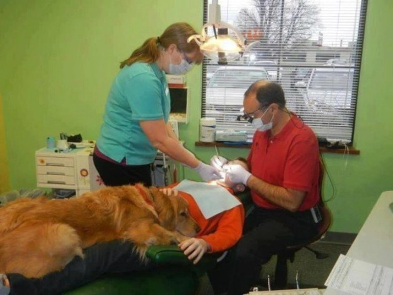 For many children, visiting the dentist is a scary experience often accompanied by nervousness and tears. However, in a small dental clinic, a special helper ensures that these fears become a thing of the past: Brook, a loving and patient Golden Retriever, has made it his mission to help young patients overcome their fear of the dentist. Brook is more than just a dog—he is a compassionate companion whose calm and friendly demeanor soothes even the most anxious children. During treatments, he often lies next to the dental chair, allowing the children to pet him. His presence distracts them from the unfamiliar sounds and tools, creating a relaxed atmosphere. For many children, the visit to the dentist becomes less stressful, and they leave the clinic with a smile. Brook’s positive impact is not only felt by the children but also appreciated by their parents, who are grateful to see their kids face the dentist without fear. The dental clinic has created a warm and welcoming environment through Brook, showing the importance of addressing the emotional needs of patients.