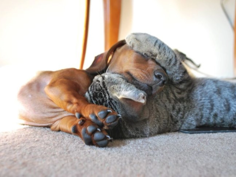 Contrary to popular belief, dogs and cats can not only coexist peacefully but can also form deep, loving friendships. Their bonds often blossom into something that resembles true affection, showcasing that love knows no species boundaries.