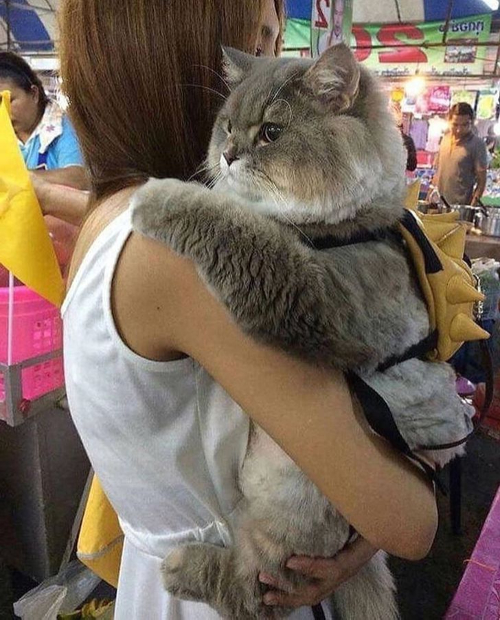 15. My cat acts like he's my personal bodyguard whenever we go out.