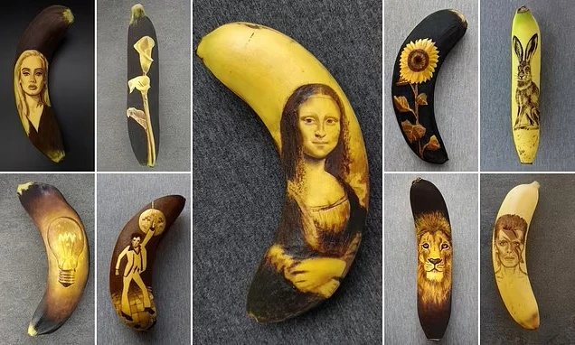 Let your creativity shine with banana peels! Before peeling the banana, try drawing on the skin with a ballpoint pen. As the peel oxidizes, your design will transform into a striking dark brown image that contrasts beautifully with the yellow background. It’s a fun and artistic way to make use of something you’d normally throw away.