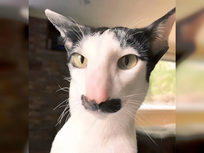 This cat, with its striking mustache, looks as though it’s ready to star in a classic film or take on a detective’s role in a mystery novel. Its serious demeanor is both amusing and captivating, as if it’s pondering the great questions of life. The elegant whiskers and intense gaze add a touch of sophistication, making this feline appear wise beyond its years. It’s a reminder that even our pets can surprise us with their unique personalities and unexpected quirks.