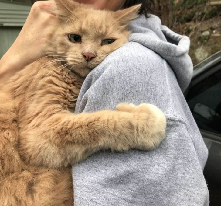 6. "This cat, who has been lost for five hours, is hugging his mom."