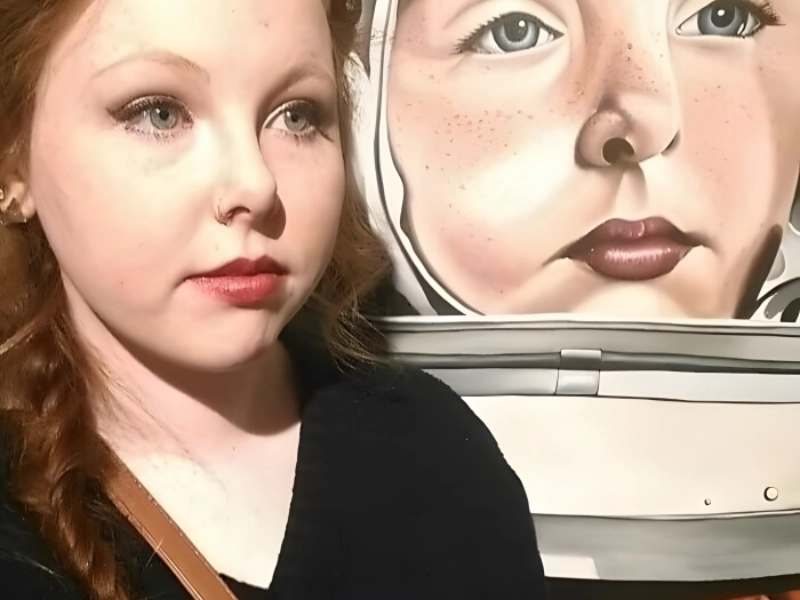 Walking through an art exhibit, this girl came across a painting that looked exactly like her. The resemblance is uncanny, from the eyes to the nose and eyebrows.