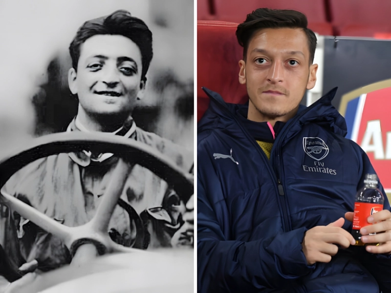 The man on the left is Enzo Ferrari, the founder of Ferrari, and the man on the right is Mesut Özil, a famous soccer player. They look strikingly similar, but the most eerie part is that Ferrari died just three months before Özil was born.