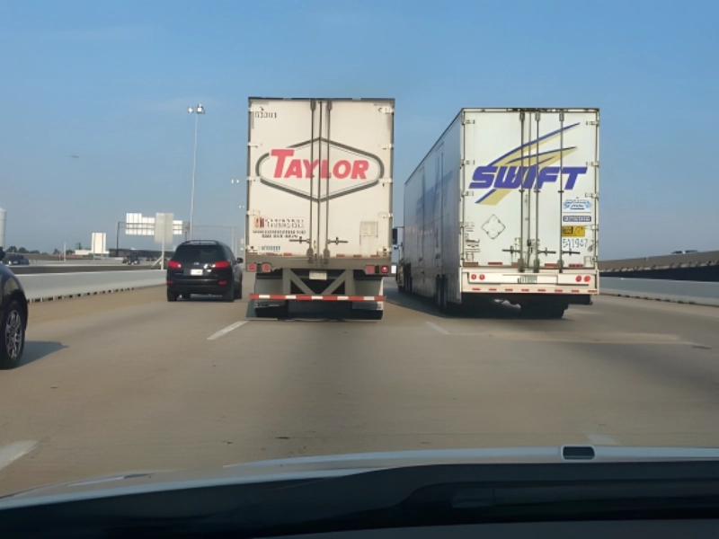 While driving, this person noticed two trucks lined up to spell out “Taylor Swift.” It’s not the actual singer, of course, but rather the names of two trucking companies.
