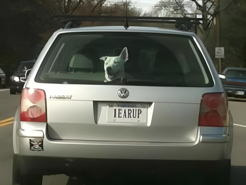 This photo is pure coincidence. The license plate on the car reads “1EARUP,” and the dog inside the vehicle just happened to be looking out the window with one ear up. Whether this was intentional or not, it’s a hilarious moment that had to be captured.