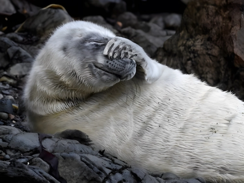 Seals are known for their playful and expressive faces, but this one seems particularly bashful after receiving a compliment from the photographer. Its awkward, almost embarrassed reaction is both charming and relatable, as if it’s not quite sure how to handle the attention. The seal’s personality shines through in this candid moment, reminding us that animals, like humans, have a wide range of emotions and responses. This delightful photograph encourages us to see wildlife not just as subjects, but as individuals with feelings, quirks, and stories of their own.