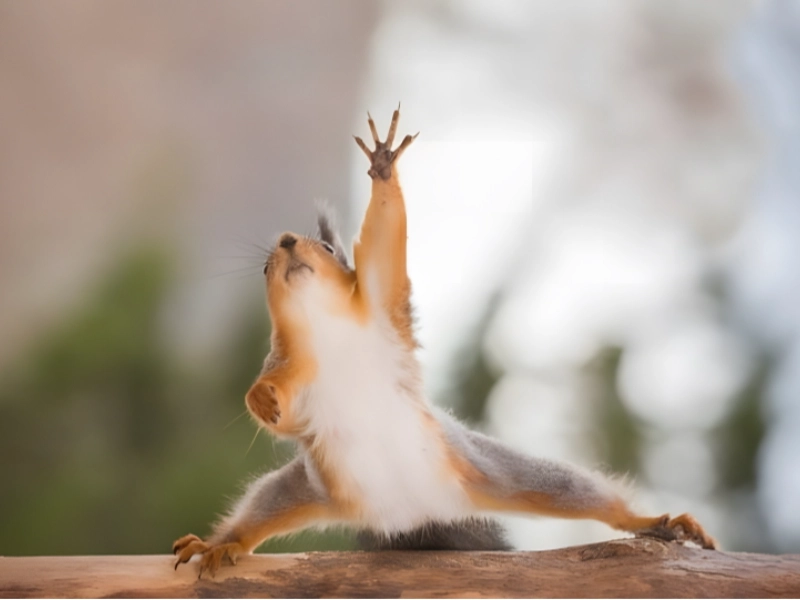 With a flick of its tail and a sparkle in its eye, this energetic squirrel appears ready to break into a dance. Its playful stance suggests a moment of pure joy, as if the forest floor were its stage and the trees its audience. Squirrels are known for their agility and quick movements, but this one seems to have taken its performance to the next level. The photograph captures a split second of exuberance, reminding us that the wild is not just a place of survival, but also a realm of fun and celebration. Watching this squirrel, we can’t help but smile and feel the infectious energy of the dance.