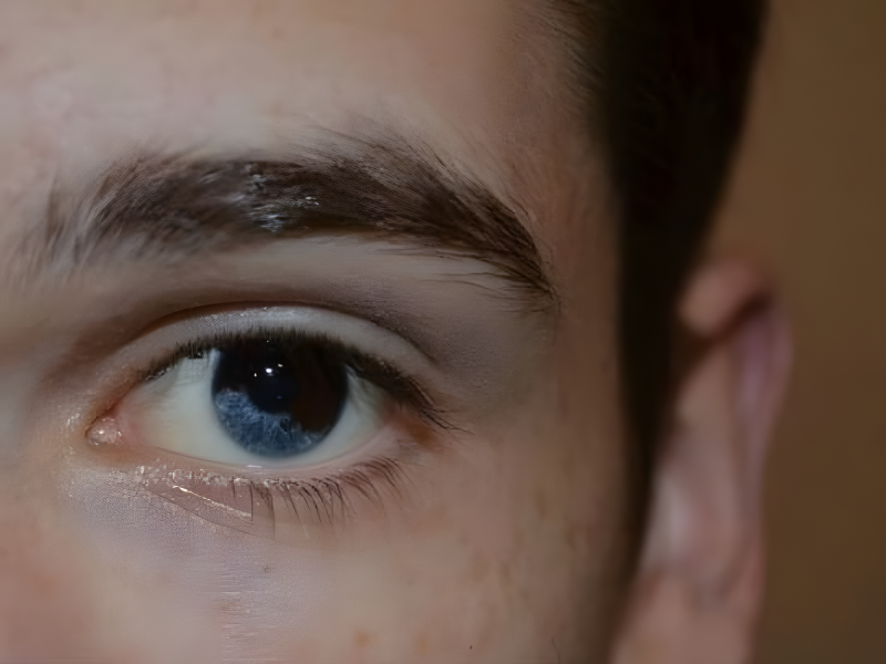 Sectoral heterochromia in a guy, where different sections of the iris display distinct hues. This rare and fascinating condition enhances his appearance, making his eyes a striking and memorable feature.