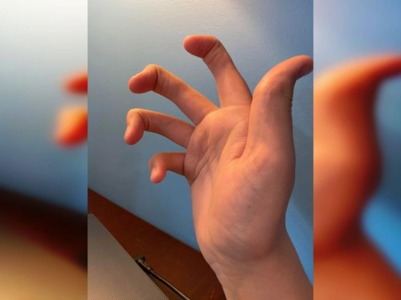 A hand lacking the middle joints of the fingers, a unique anatomical feature that sets this individual apart. Such traits highlight the incredible range of human physical variation and the beauty of embracing what makes us different.