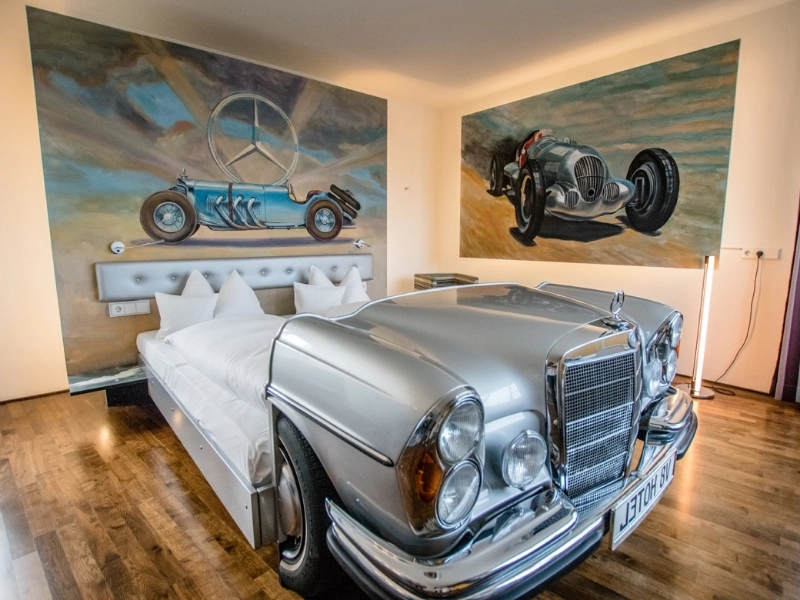 Für Auto-Enthusiasten aus aller Welt ist dieses einzigartige, auto-thematisierte Hotel ein wahres Paradies. Dort sind die meisten Wände mit Gemälden bedeckt, die die Besucher in ein Rennspiel eintauchen lassen, und die Betten sowie andere Einrichtungsgegenstände sind aus echten Automobilen gefertigt.