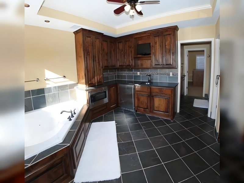 Zum Abschluss der Serie: Dieses Zimmer kommt ganz ohne Bett aus. Das Bild zeigt höchstwahrscheinlich eine Schlafzimmerrenovierung, die etwas danebengegangen ist und ein Ergebnis hervorgebracht hat, das den eigentlichen Zweck des Raumes fast, aber nicht ganz erfüllt. Das Zimmer ist vermutlich vollständig mit üblicher Schlafzimmereinrichtung wie einem Schrank, einer Kommode, Nachttischen und sogar dekorativen Elementen wie Vorhängen oder Kunstwerken ausgestattet. Es fehlt jedoch das Wichtigste: das Bett selbst. Dies erzeugt eine humorvolle und bisweilen surreale Szenerie, als hätten die Renovierer den Hauptzweck des Zimmers völlig aus den Augen verloren, weil sie sich zu sehr in Details vertieft haben. Der Fotograf hat diesen Moment der Absurdität gekonnt eingefangen und betont damit den mitunter skurrilen Charakter von Renovierungsarbeiten. Dieses Bild könnte das Ergebnis einer Lieferverzögerung, eines Messfehlers, der keinen Platz für das Bett ließ, oder einfach eines Falles von falschen Prioritäten im Sanierungsprojekt sein. Was auch immer der Grund ist, das Bild erinnert uns auf humorvolle Weise daran, bei Hausreparaturen stets das große Ganze im Blick zu behalten. Diese visuelle Pointe lädt die Betrachter ein, sich die verwirrte Reaktion eines jeden vorzustellen, der dieses "Schlafzimmer" für seinen eigentlichen Zweck nutzen möchte.