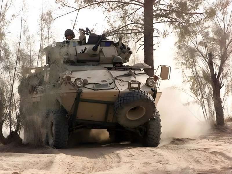 Der Coyote wurde 1996 zunächst als Aufklärungsfahrzeug in Dienst gestellt. Das nicht amphibische gepanzerte Aufklärungsfahrzeug ist mit zwei NATO C6 Maschinengewehren und einer 25x137mm M232 Bushmaster Kettenkanone bewaffnet. Der Coyote kann mit einem Paket zum Schutz vor schwerer Artillerie ausgerüstet werden und das Fahrzeug ist bereits gegen chemische, biologische und radiologische Angriffe geschützt. Es verfügt über ein ABC-Atemschutzsystem, um im Falle eines Angriffs Chemikalien abzublasen.