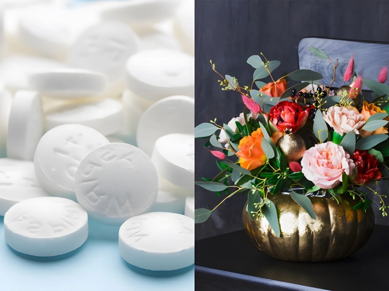 Die meisten Menschen haben eine Aspirin-Flasche zu Hause, falls plötzlich Kopfschmerzen auftreten. Weniger bekannt ist, dass Aspirin nicht nur ein hervorragendes Schmerzmittel ist. Irgendjemand hat herausgefunden – wir wissen nicht genau wie –, dass man Blumen länger frisch halten kann, wenn man eine Aspirin-Tablette zerkleinert und dem Vasenwasser hinzufügt.