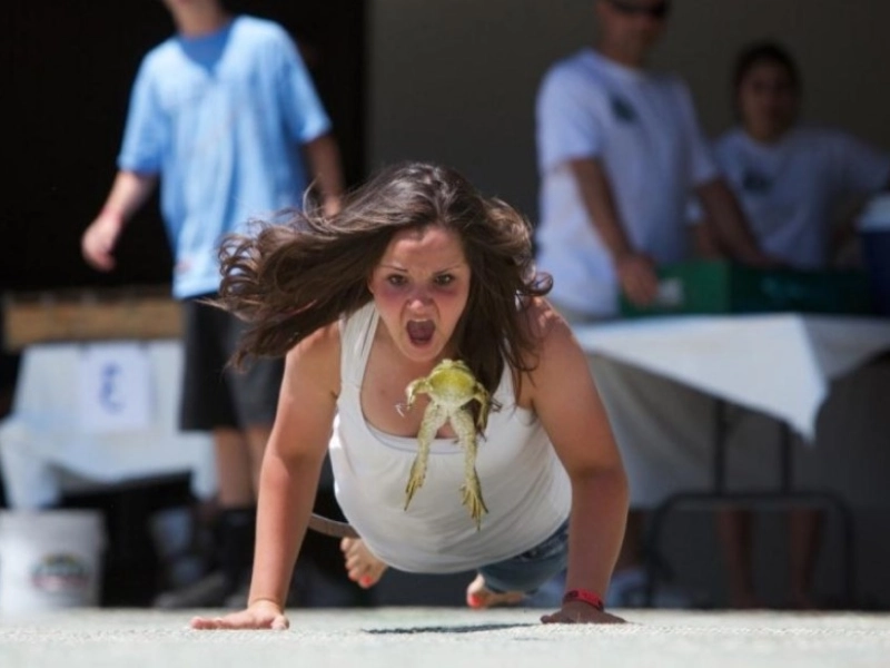This playful sport involves participants imitating the movements of frogs. Competitors jump and hop in a frog-like manner, aiming to mimic the creature’s agility and grace. It’s a lighthearted event that brings out everyone’s inner child.