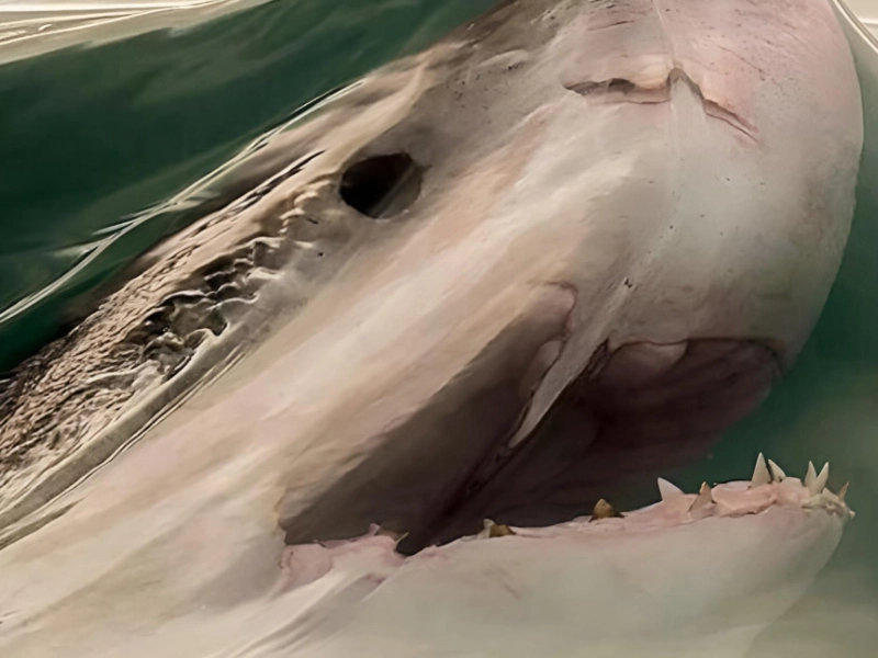 This mesmerizing photo serves as a stark reminder of the ocean's mysteries and its lurking dangers. The sheer size and sharp teeth of the fish depicted here are enough to inspire both awe and caution. In this breathtaking moment, a shark is captured just as it prepares to break the water's surface, creating an illusion of raw power and grace.
