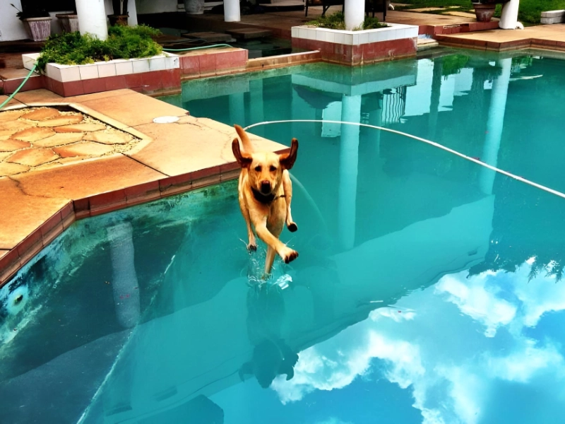 This delightful image, uploaded to Imgur in 2012, came with the caption, "I'm not a father...but I love [my dog] like a daughter." It resonates deeply with pet lovers everywhere, capturing the bond between humans and their furry companions. The yellow Labrador in the photo is caught mid-leap, seemingly walking on water as she prepares to dive into a swimming pool.