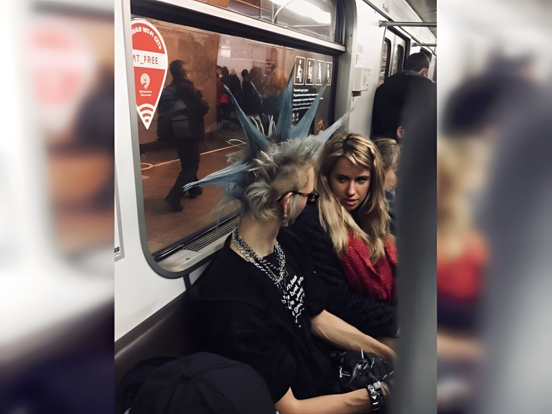 Hair as striking as this cannot go unnoticed. From across the platform, she is instantly recognizable, her bold style injecting energy and excitement into the daily commute. She is a moving beacon of self-confidence.