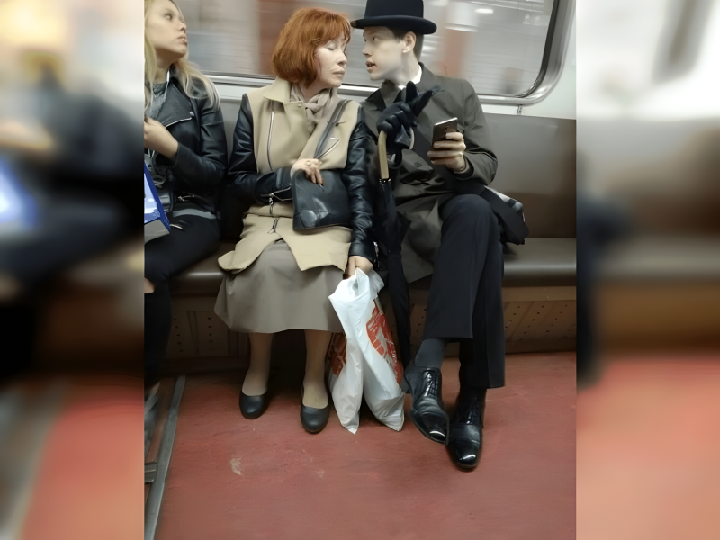 Passion is impossible to hide, especially for true fans. This dedicated lover of English films wears their devotion proudly, turning the subway into a rolling tribute to cinematic classics. Posters, quotes, and memorabilia become badges of honor, sparking conversations and forging instant connections with fellow movie buffs.