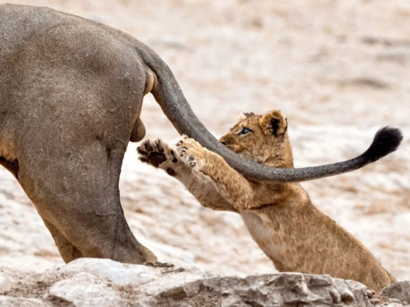 The lion cub just learned the hard way why certain things are not a good idea. A lesson well-learned in the cutest way possible! This photo captures a moment of curiosity and discovery, reminding us of the playful and adventurous nature of young animals.
