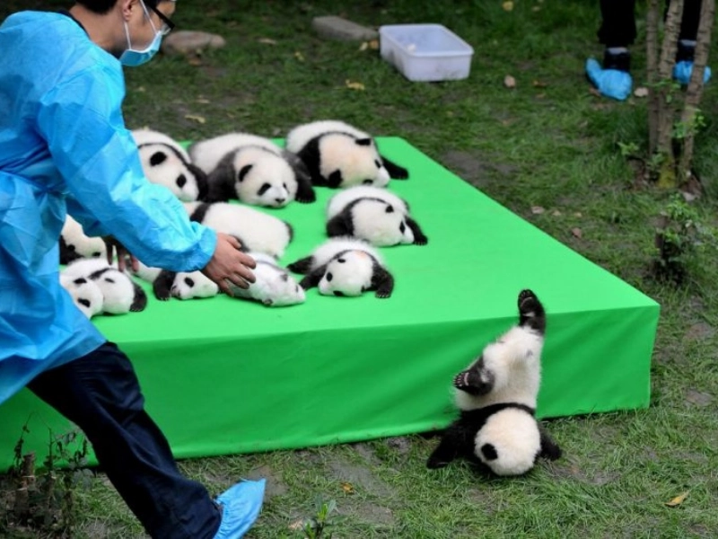 Pandas always need to be kept under watch. Their mischievous antics and playful behavior make them endlessly entertaining. This panda’s curious expression and adorable posture make it impossible to look away.