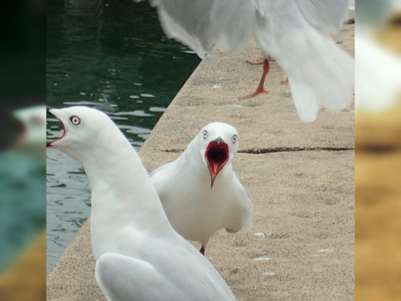 When seagulls see you carrying food, you better watch out! Their determined gaze says it all—they’re ready to swoop in at any moment. These clever birds are experts at spotting a snack from a mile away, and their persistence is both impressive and amusing. It’s a comical reminder to always guard your food when you’re near the beach.