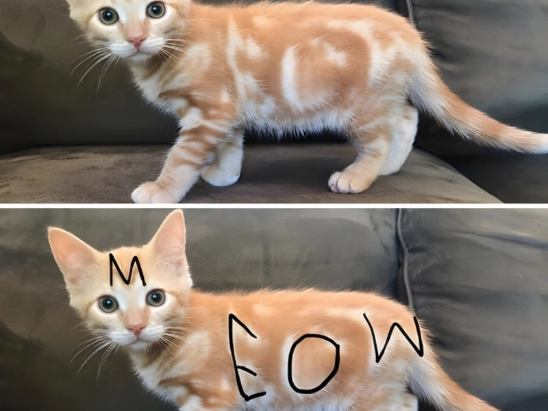 Cat with "Meow" PatternOverview This cat’s fascinating fur pattern sparked the imagination of its owner, leading to a delightful and playful discovery. Key Features