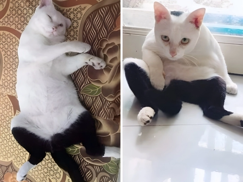Cat with "Pants" PatternOverview Unlike the usual random or vertical patterns seen on cats, this feline has a unique marking on its back that hilariously resembles baggy pants. Key Features