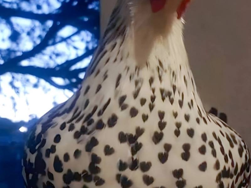 Unique Heart-Patterned HenOverview This hen stands out with a remarkable pattern resembling multiple hearts on its body, making it truly one-of-a-kind. Key Features