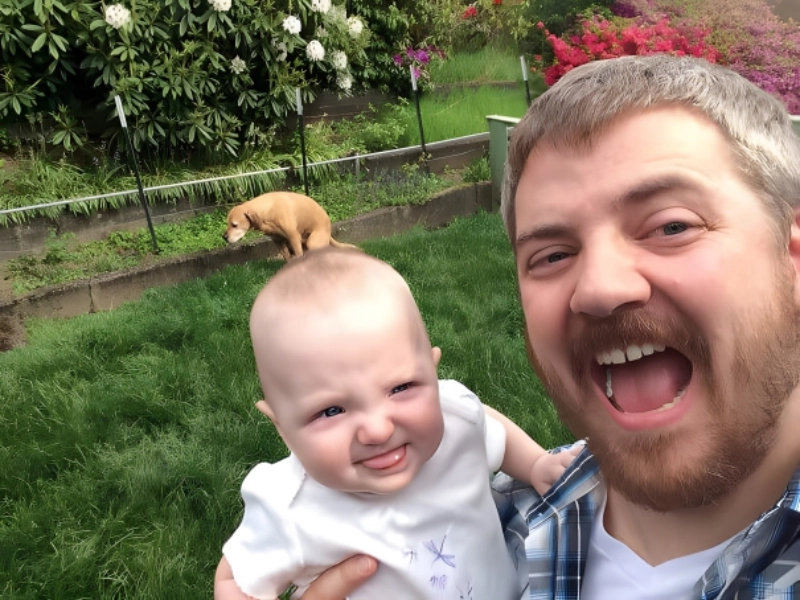 Have you ever seen a photo that looks like a dog pooping on a baby’s head? It clashes with the peaceful garden scene but is still hilarious. Usually, a pooping dog doesn’t improve a photo, but here it looks like the tiny dog is sitting on the baby’s head. That’s one for the family album.