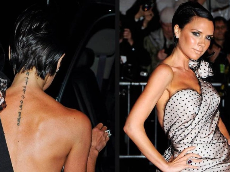 Victoria Beckham has a tattoo in Hebrew that says, "I am my beloved's, and my beloved is mine." This meaningful phrase represents love and commitment, especially to her family and husband, David Beckham. Placed around her neck, the tattoo is a constant reminder of her values and the importance of love in her life.