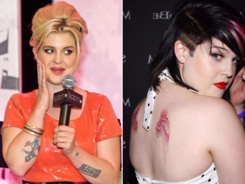 Kelly Osbourne’s tattoos include angel wings on her back for protection and freedom, and a synthesizer on her arm, showing her passion for music and creativity.