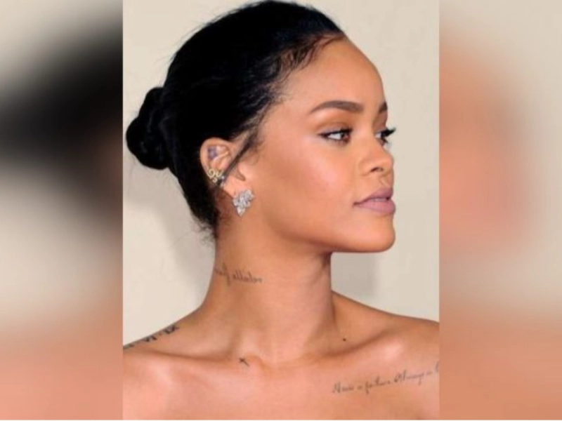 Alongside her star tattoos, Rihanna has several inscriptions on her neck, collarbones, and shoulder. One notable tattoo is written backward, saying, "Any failure is always a lesson." This message is a reminder of resilience and learning from setbacks. She also has a small star on her right ear, adding a playful touch to her tattoo collection and reinforcing her love of celestial themes.
