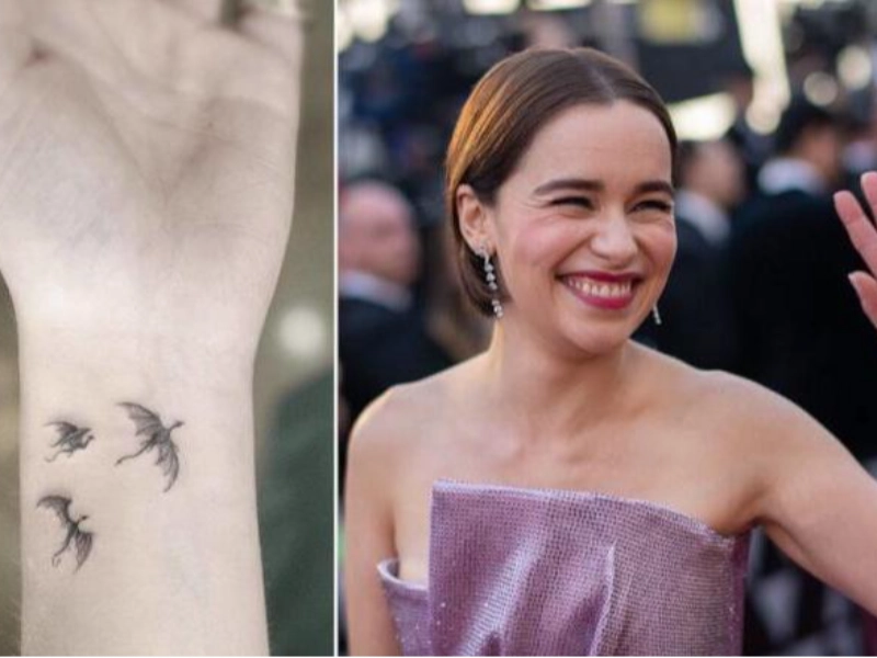 After "Game of Thrones," Emilia Clarke celebrated her role with a tattoo of small dragons on her wrist. This delicate design connects her to her character Daenerys Targaryen and the powerful journey she experienced. The tattoo is both a tribute to her famous role and a symbol of the strength and resilience her character showed. It reflects the impact the series had on her life and career.