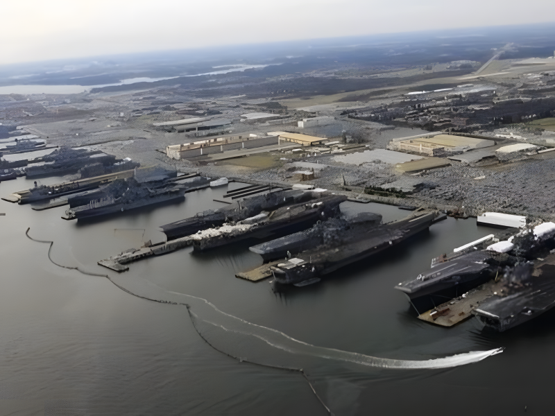 Located near the Atlantic Ocean, southeast of Hepton-Rhodes Bay, Norfolk Naval Base is a colossal facility that houses at least 75 US Navy ships. This includes five nuclear-powered carriers and five aircraft carriers, making it a critical operational hub for the United States Navy.