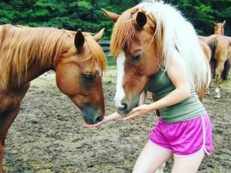 Here, a girl appears to have the head of a horse, creating a surreal and hilarious effect. This clever composition merges human and animal in a way that is both unexpected and entertaining, perfectly illustrating how a simple angle can transform reality into something whimsical. The seamless blending of the girl's body with the horse's head creates a visual pun that delights the viewer and makes you appreciate the creativity behind the shot. It’s a reminder that sometimes, the funniest moments are those we least expect.