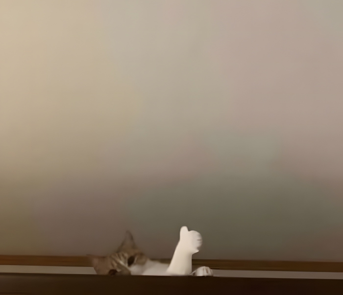 This photo captures an unusual moment—a cat giving a thumbs-up. Either something strange happened, or the cat fell from somewhere and is signaling that it’s okay. The fact that the cat appears perched high near the ceiling adds to the mystery. Before seeing this picture, you might not know cats could give a thumbs-up. Some cats are born with extra toes due to polydactylism, often referred to as a “thumb.” This cat’s cheerful expression reminds us that pets can surprise us in delightful ways, showcasing the beauty and unpredictability of pet ownership.