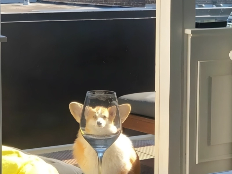 This amusing photo captures a corgi standing innocently while its owner laughs uncontrollably. The glass in the background distorts the corgi’s head, creating a comical effect. While there’s no real purpose to this photo other than making us laugh, it’s almost creative in its simplicity. Hopefully, the corgi’s confidence wasn’t shaken by this moment. Dogs have their own unique charm, and silly moments like this remind us why we love them. This photo perfectly encapsulates the joy of having a pet.