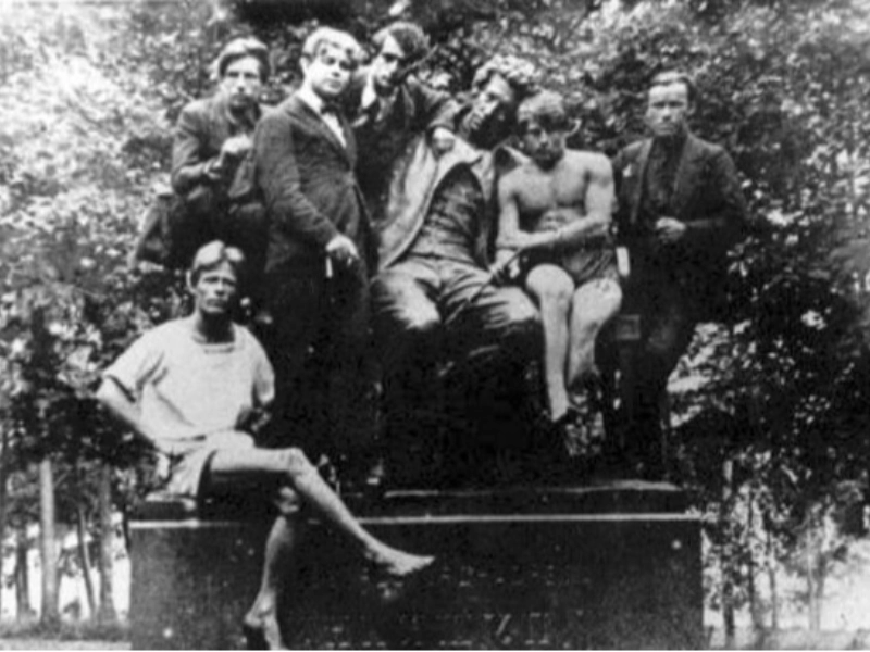 In 1924, boys at Pushkin Children's Village climbed the Pushkin monument, capturing a scene full of youthful energy and admiration for the poet. Among them was Sergei Yesenin, the famous Russian poet known for his moving verse. This moment not only honored Pushkin’s legacy but also reflected the impact of literature on young minds during a period of change in Russia. The image highlights the nation’s deep appreciation for poetry and the arts.