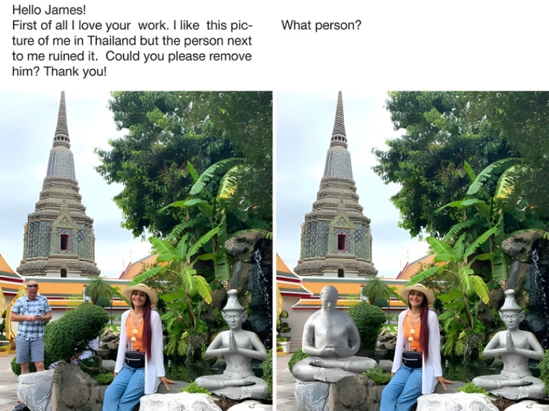 It's somewhat frustrating, isn't it, when some hapless individual ruins a picture you truly love? This female thought so and called the person in the background to ask to have him taken off. He's still staring down at his phone; a stone monument to match the one on the right replaced him. He must have been staring at something quite fascinating if it could have turned him entirely to stone like that.