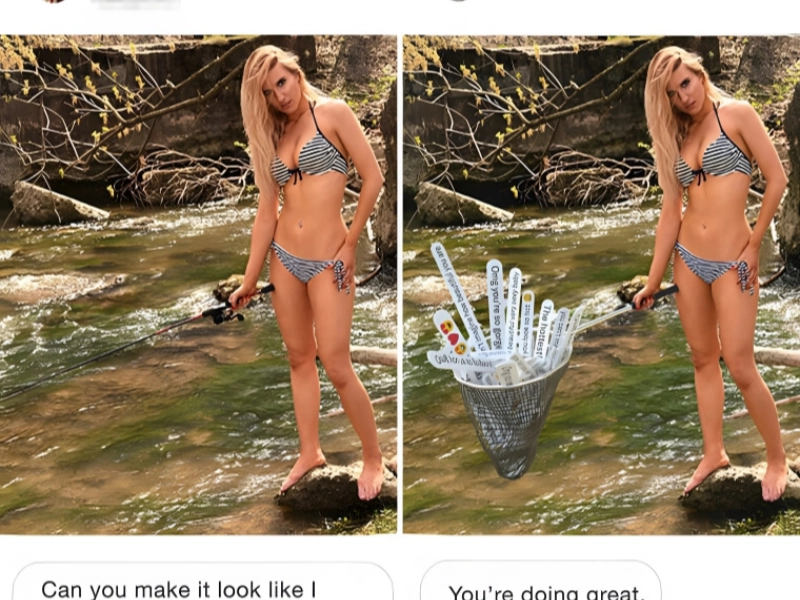 You can most likely relate to a picture on social media of someone hiking or engaging in another outdoor activity if they are totally dressed inappropriate for the situation. Still, this girl understood what she was getting into when she requested a picture of her clutching a fishing pole to be edited. "Can you make it look like I truly know how to fish?" she asked.