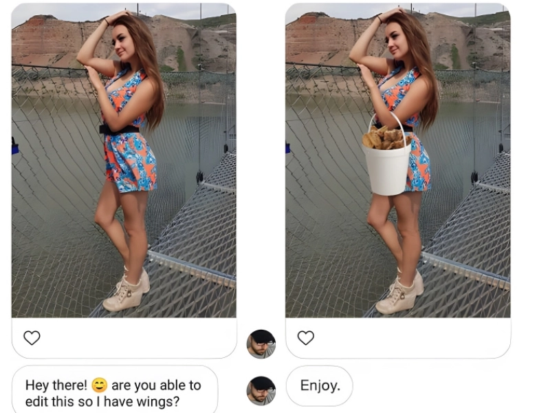 Though we're not quite sure what this girl was expecting when she begged to be granted wings, we're very confident she wasn't expecting a six-piece. She most likely expected something a little more artistic, beautiful, or perhaps even hand-drawn pair of wings. Rather, she received a bucket of chicken; to be honest, we would most likely accept that over two "actual" wings.