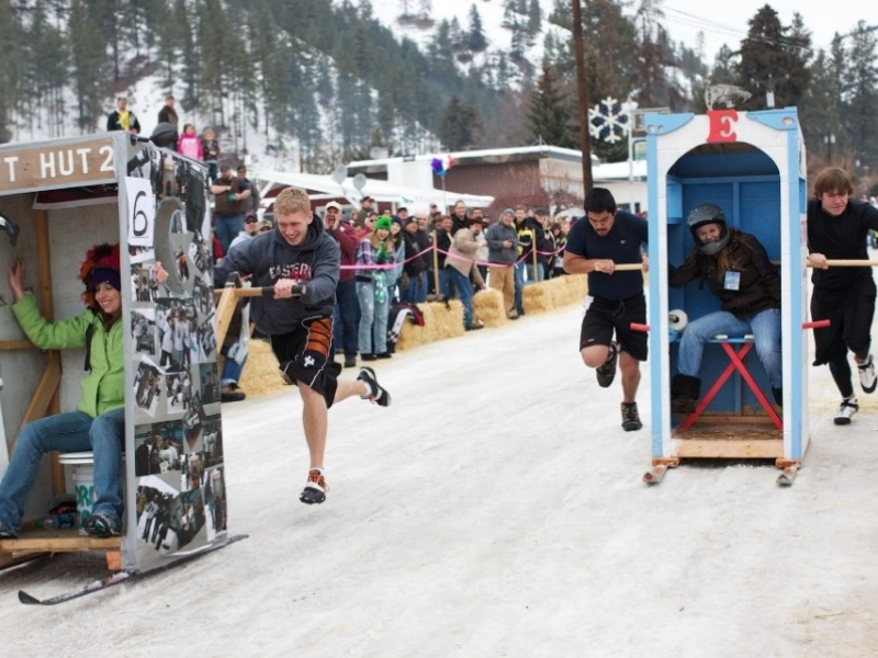 Toilet Cubicle Racing is as ridiculous as it sounds, yet it never fails to entertain. In this peculiar sport, participants compete by racing while confined to standard toilet cubicles. The cubicles are lifted off the ground and repurposed as makeshift "vehicles" that participants must propel forward using their legs. The races take place on a closed circuit, and the winner is the first to cross the finish line while still inside their cubicle. This hilarious event requires a mix of stamina, humor, and the ability to navigate a highly unconventional "vehicle," making it a memorable and laugh-out-loud experience for both racers and spectators.